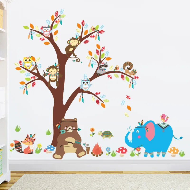 where can We buy Bear Owl Animal Cartoon Tree Vinyl Wall stickers for kids rooms Home decor DIY Child Wallpaper Art Decals House Decoration