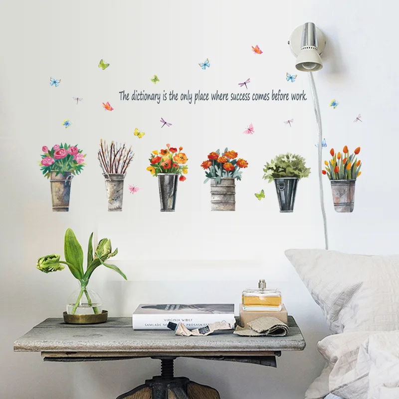 where can My spouse and i buy little flower pots wall stickers girls plants adhesivo wallpaper home bedroom window decor for kids rooms