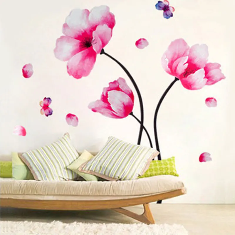 where can My spouse and i buy DIY Watercolor flower Wall Stickers Living room bedroom TV background home decor Refrigerator Decals Wallpaper Decoration TC927